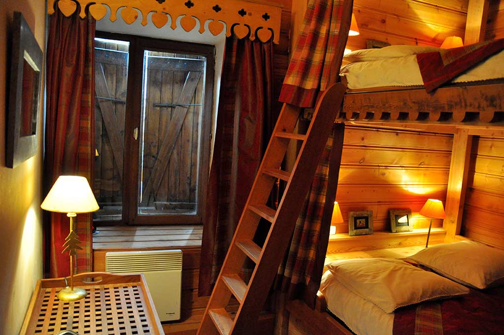 Tout en bois également, 2 lits doubles superposés d’une largeur de 140 cm vous attendent. Draps fournis et lits faits.