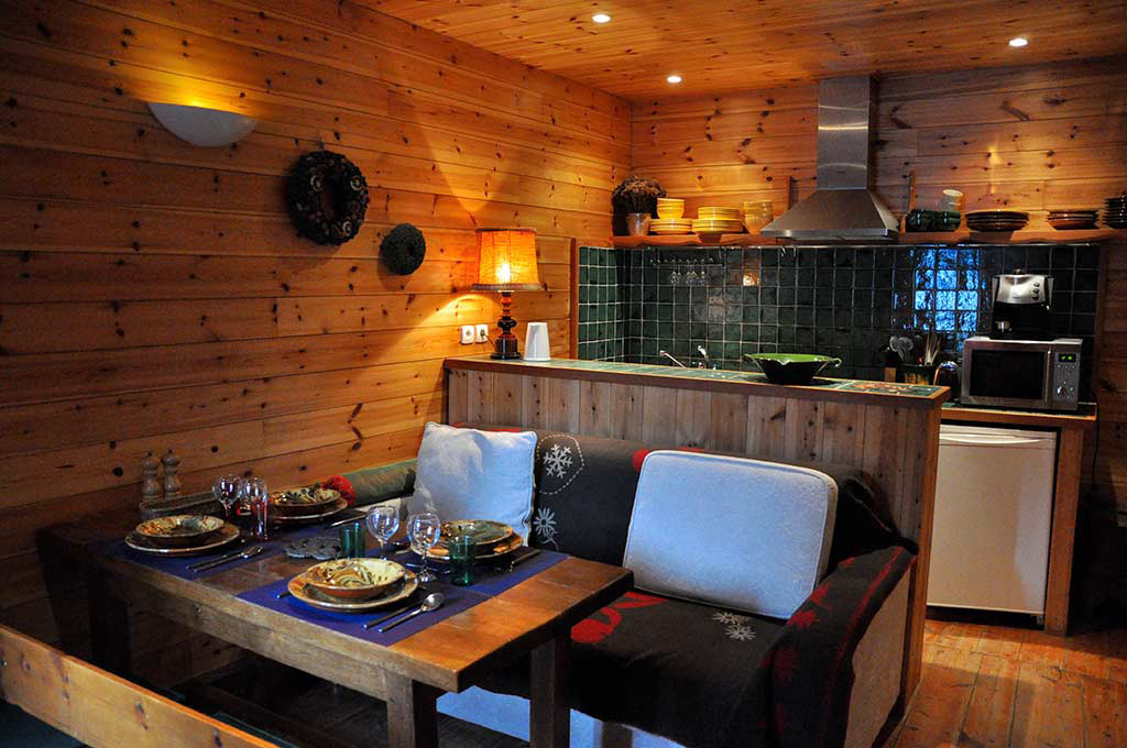 – lave vaiselle, four, frigo, plaques, rangements, cafetière « Nespresso », appareils à raclette et fondu, micro-onde, auto-cuiseur, toaster, bouilloire électrique, hotte aspirante.