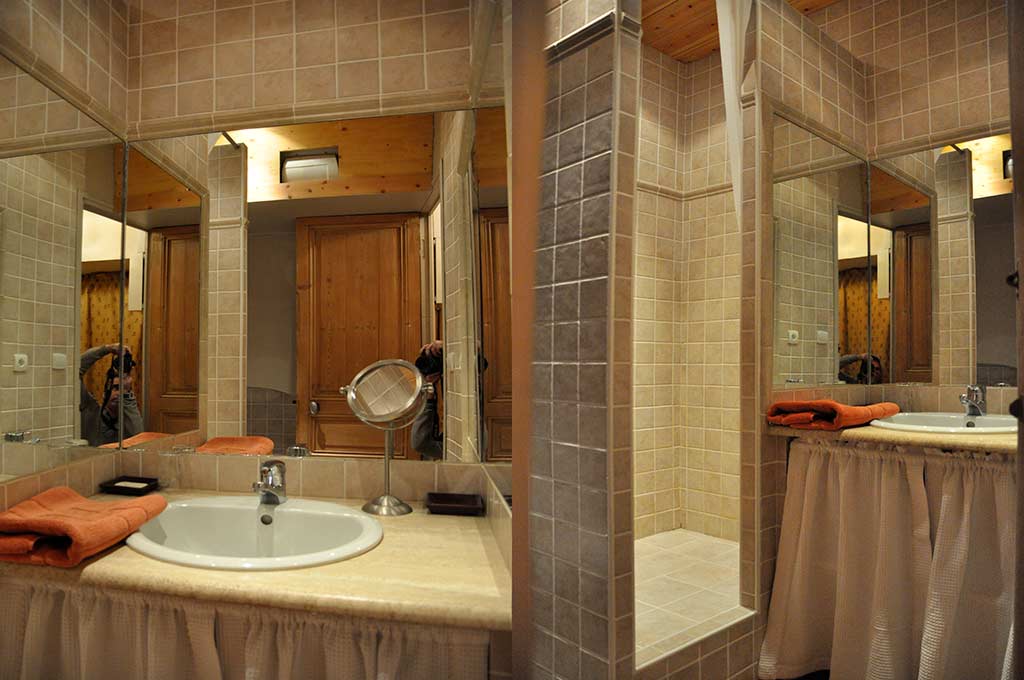 Equipée d’une douche à l’Italienne, d’un WC et d’un coin lavabo cerné de grands miroirs éclairés, la salle de douche est pratique et les réserves d’eau chaude sont généreuses. Vous pourrez apprécier la détente de l’après-ski. Les serviettes sont fournies.